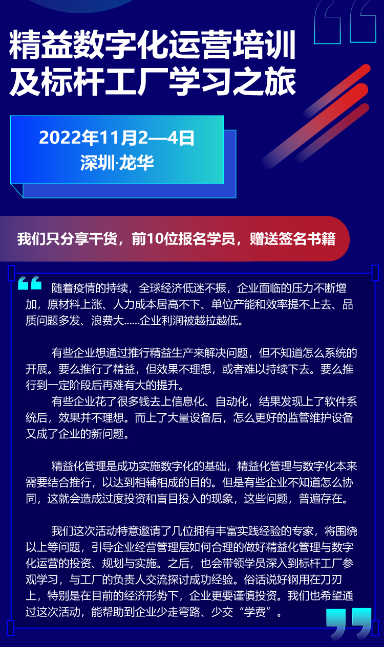 精益數字化運營培訓及標桿工廠學習之旅火熱報名中!